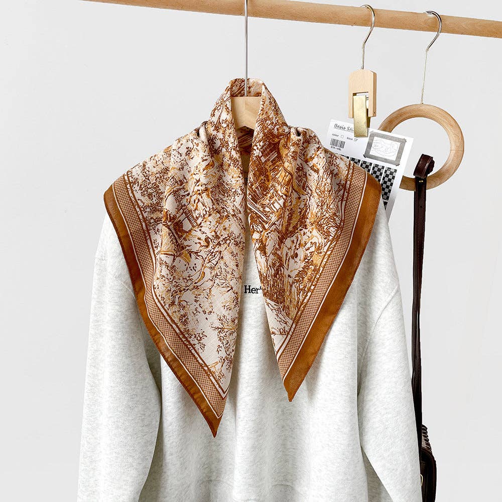 Splicing Print Vintage Square Silk Scarf